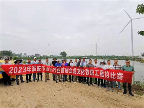 6月17日, 淮安市通信行业首届企业文化节职工钓鱼比赛在百里画廊段的淮阴区南陈集八方垂钓中心举行。来自各会员单位选手参加了比赛。 比赛场地紧靠二河和百里画廊大堤近乎天然野钓,对于技术要求很高,十分具有挑战性,选手们从抽签决定钓位开始就已经摩拳擦掌、跃跃欲试。进入赛区就位后,大家又都表现出了专业选手的沉着冷静,拌鱼食、上鱼钩、试浮漂,各项准备工作都井然有序、有条不紊地进行。