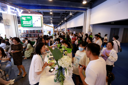 威立今年的展台以绿色为主要视觉元素,通过使用绿色植物和花墙为布展场景,突出环境保护和可持续发展的理念。威立共展示了超过800本书籍和在线学术资源平台Wiley Online Library,并首次举办了 “科研日” 系列活动,将教育和科研融合展示。