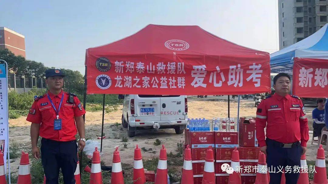 九年磨一剑,六月试锋芒。为帮助广大考生安心顺利地参加考试,新郑市泰山义务救援队开展爱心助考志愿服务活动,在全县5个考点附近,设立“爱心护考志愿服务站”,为考生送上矿泉水,以实际行动助力中考,为广大学子护航。