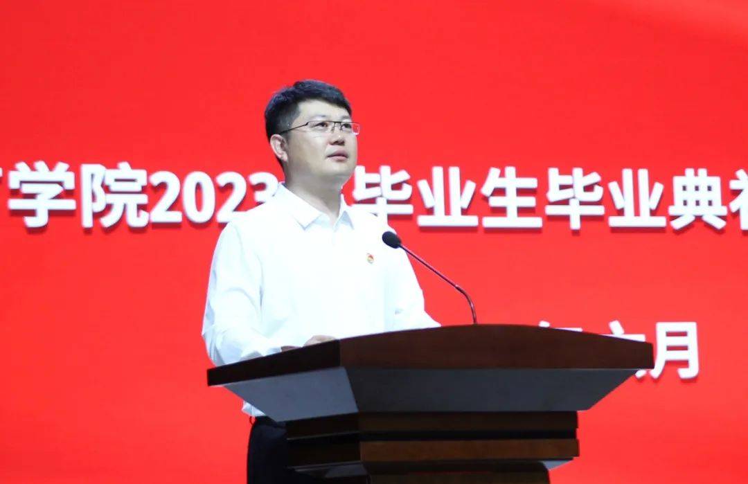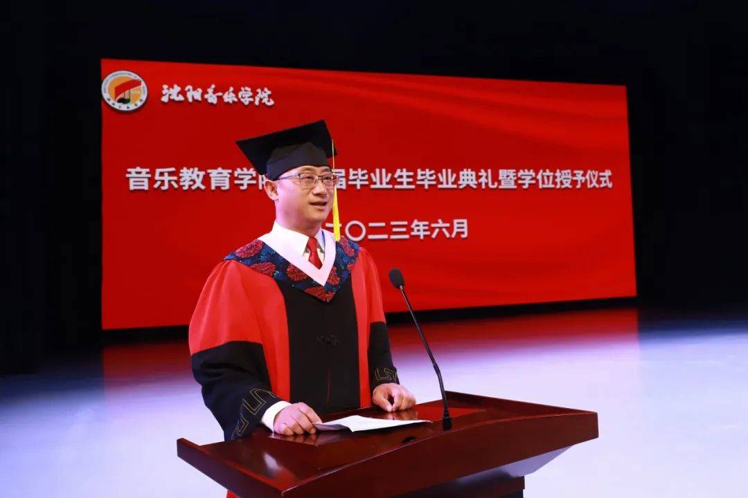 吴家军致辞,他代表音乐教育学院全体师生员工向全体毕业生顺利毕业表示热烈的祝贺,为他们送上美好的祝愿,并寄语三点希望: 一是希望同学们要立志高远,继承传统,追求卓越。 希望同学们在走向社会以后,一如既往地将鲁艺精神融入到工作和生活中,将爱国之志转化为报国之实,为中华民族伟大复兴贡献力量。 二是希望同学们要明确目标,不懈奋斗,勇于担当。 “石蕴玉而山辉,水怀珠而川媚。”你们要传承鲁艺精神这一宝贵财富,永远保持赤诚的责任心和强烈的使命感,努力担负起“以高尚的精神塑造人、以优秀的作品鼓舞人”的神圣使命,在艺术的道路上辛勤耕耘,为社会主义文化事业的繁荣做出应有贡献。 三是希望同学们胸怀祖国,实学实干,知行合一。 在以后的学习和生活中要继承和弘扬伟大的抗疫精神,做新时代的追梦青年,坚定不移听党话、跟党走,胸怀“国之大者”,为祖国建设添砖加瓦,为国家的未来而努力奋斗,以梦为马、不负韶华,谱写无愧于时代、无愧于人民的青春篇章。 拨穗礼成 筑梦起航