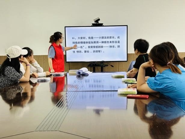为满足家长们的实际需求,志愿者为大家讲解如何接纳孩子的情绪、接纳和疏导情绪的技巧、情绪管理4A法,教授家长合理使用情绪轮盘以及情绪日记本,最后推荐了相关书籍、影视作品,家长们认真聆听着,对情绪管理有了更深入的了解。