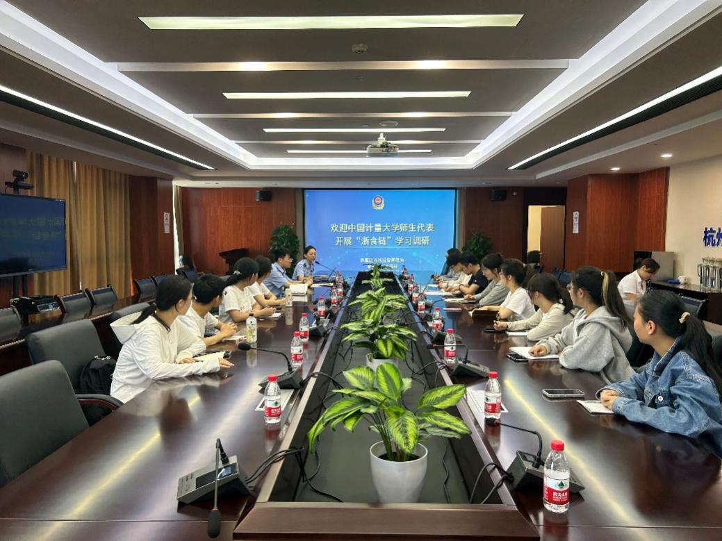 为了探索浙江特色的“浙食链”食品追溯赋码系统的应用现状,7月11日至12日中国计量大学“顺链之行”暑期社会实践团队十余名学生在指导老师的带领下,一同来到杭州市拱墅区市场监督管理局与世纪联华商超开展“浙食链”相关学习调研并进行访谈。 “浙食链”,即浙江省食品安全追溯闭环管理系统,是由浙江省市场监督管理局牵头创建的,该系统于2021年3月15日国际消费者权益日上线。在政府监管、企业负责、人民参与、社会共治的协同发力格局下,构建从农田(车间)到餐桌全过程监管体系,实现食品安全全流程可控、全链条闭环管理,大幅提升食品安全治理能力。