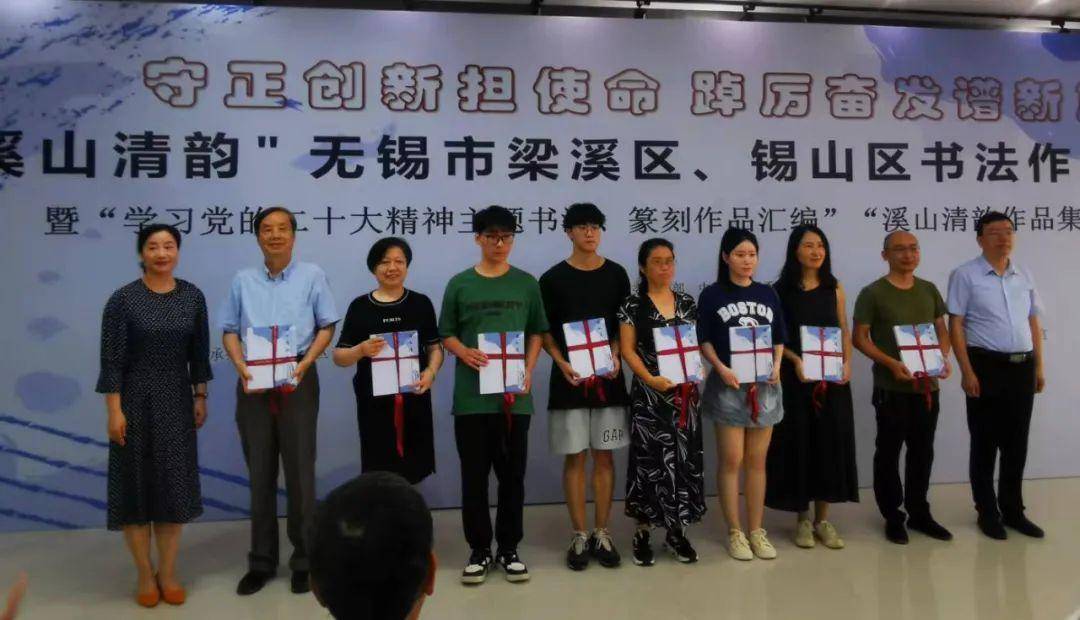 接着,梁溪区文联主席赵怀忠、锡山区文联主席李峰为梁溪区九个街道的代表赠送了由梁溪区书协编写的 “学习党的二十大精神主题书法、篆刻作品汇编”。