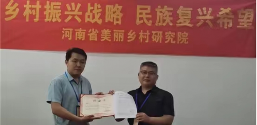 河南省美丽乡村研究院乡村项目产业发展专委会会长陈启敬针对金融赋能乡村产业发展精彩分享 交流会思想高潮一波接一波,接下来的荣誉感让会场气氛进一步升华,牛华朝院长为中国人民大学河南校友会陈启敬副会长颁发了河南省美丽乡村研究院项目产业发展专委会会长聘书,为本次新晋调研员刘奎、侯冬洋、张红娟、李喜国、李迎涛、牛俊义、赵辽源、王亚鹏等颁发了任命书。