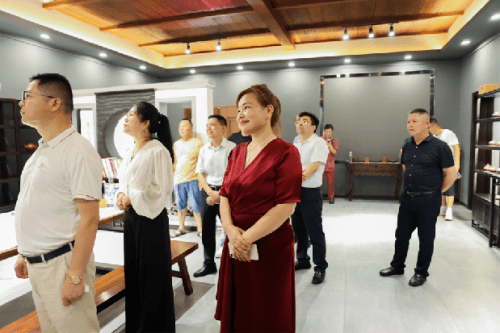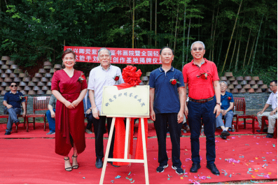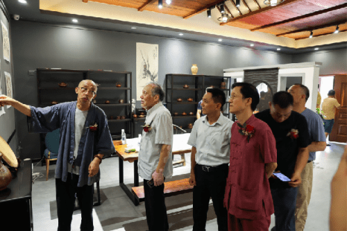 “太湖烟波文人相叙,紫砂禅韵书画辉映。”7月24日上午,由宜兴卿荧紫砂明鉴书画院、全国轻工技术能手刘卿荧创作基地、湖北破山僧文化传媒有限公司、黄梅隐庐(明鉴工作室)主办,“品宜兴”自媒体、黑龙江省陶瓷行业协会、宜兴云泉紫砂文化有限公司、江苏丰玉文化传媒有限公司承办,宜兴市演讲与口才协会、宜兴市阳羡古琴社等协办的“宜兴卿荧紫砂明鉴书画院暨全国轻工技术能手刘卿荧创作基地揭牌仪式”在位于宜兴市丁蜀镇洑东大港村的卿荧紫砂明鉴书画院内举行。