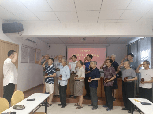 三、“兵锋”至,金石开 “忠诚,博爱,担当、奉献、牺牲”,这是张纪东最早总结出来的“兵锋”精神。走出社区,服务街道,张纪东于2017年成立了新昌县南明先锋党员志愿服务队,随后又组建新昌县兵锋社会工作服务中心,积极参与文明城市创建、未成年人爱国主义国防教育、疫情防控等志愿服务,累计完成志愿服务时间达30000多小时。在这建军96周年即将到来的7月26日,张纪东又领着“兵锋”一班人,走访慰问社区内的几位老革命、老党员、老战士,并召开退役军人相关座谈会,向大家致以节日的祝贺,并汇报社区近期的有关工作及在全力打造清廉社会组织的措施与实践,认真听取大家对新昌县创建全国文明城市的意见与建议。参会人员畅所欲言,对社区工作在肯定的基础上也提出了一些为民期待的意见与建议,同时表示要弘扬“兵锋”精神,为社区建识发挥余热多尽力。