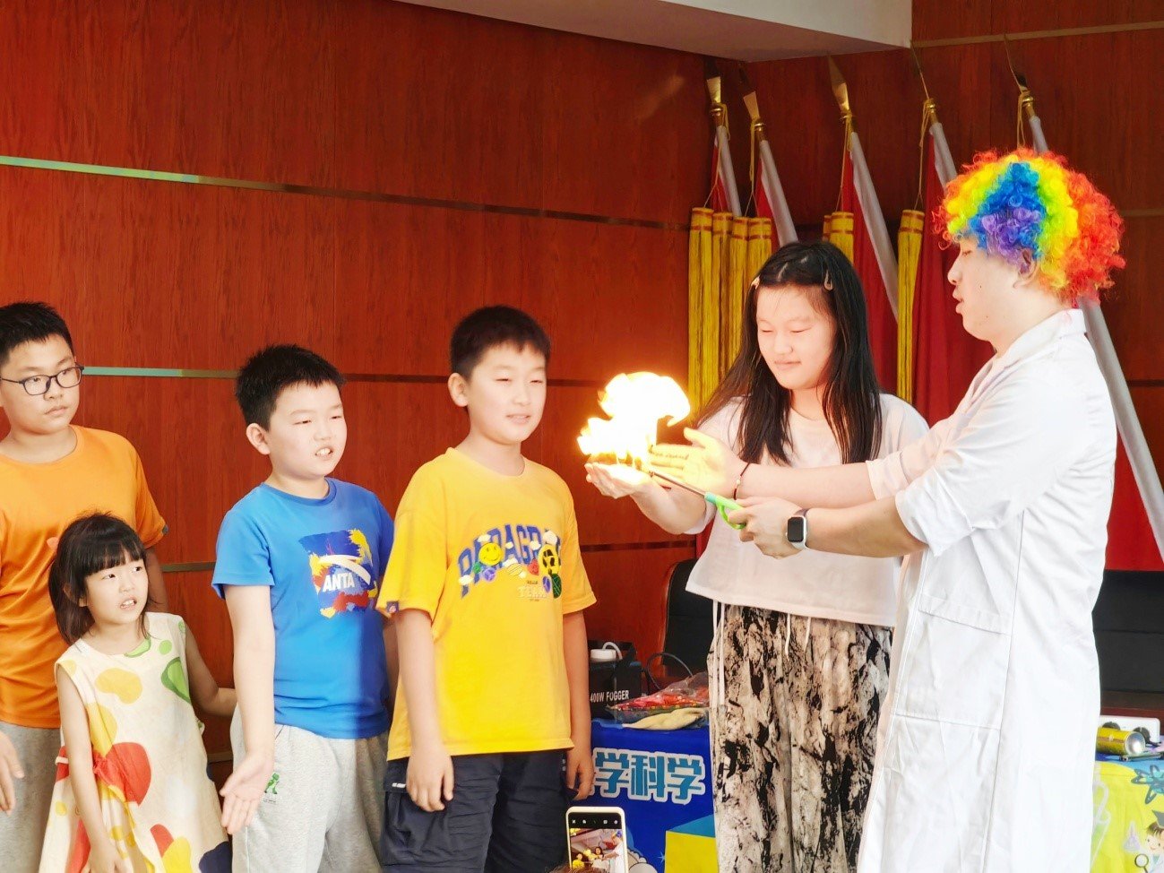 “这些现象我们称为伯努利原理,在流体系统中,流速越快,流体产生的压强越小,流速越慢,流体产生的压强越大。”伯努利浮球、空气龙、掌中火……一个个科学小实验让孩子们在惊叹之余,也真切的感受到了科学的魅力。