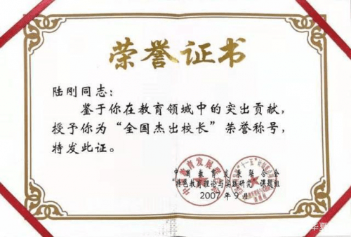 一个好的校长就是一所好学校。无锡市园林技工学校校长陆刚十分注重校园建设,用他自己的话来说:“家就是学校,学校就是家”。他的敬业精神影响着每一位班子成员和每一位教师。他在教育教学这片土地上辛勤耕耘,奋力拼搏,在学校管理岗位上与时俱进、锐意进取,使得无锡市园林技工学校在办学理念、教育管理、办学质量、社会效益等方面处于无锡市各技工院校中领先水平。学生平均成绩年年在全市技工院校领先,学校管理工作在全市技工院校教育系统年度综合考评中多次被评为红旗单位。他本人也先后荣获 “无锡市优秀校长”、无锡市“骨干教师”、无锡市“优秀教师”、“优秀教育工作者”等荣誉称号。昨日的荣光是今日的起点,在人生的征程上,他踏歌从容。