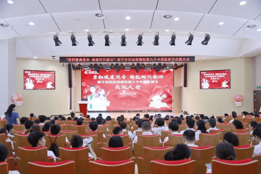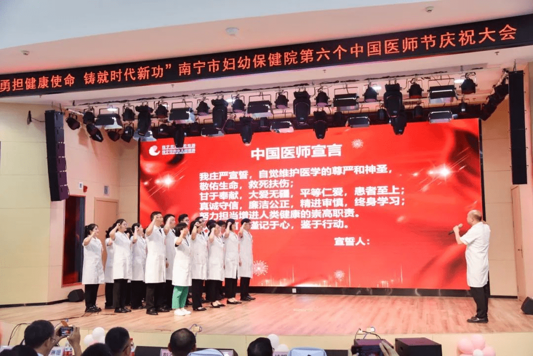 除了义诊和慰问活动,南宁市妇幼保健院还举行了一场精彩绝伦的庆祝大会,将医师节氛围推向高潮。南宁市卫生健康委员会副主任李琳珊、南宁市妇幼党委书记蒋武、院长何宁宇等全体党政领导班子与医务人员欢聚一堂共庆医师节日,激扬放飞妇幼医者梦想。