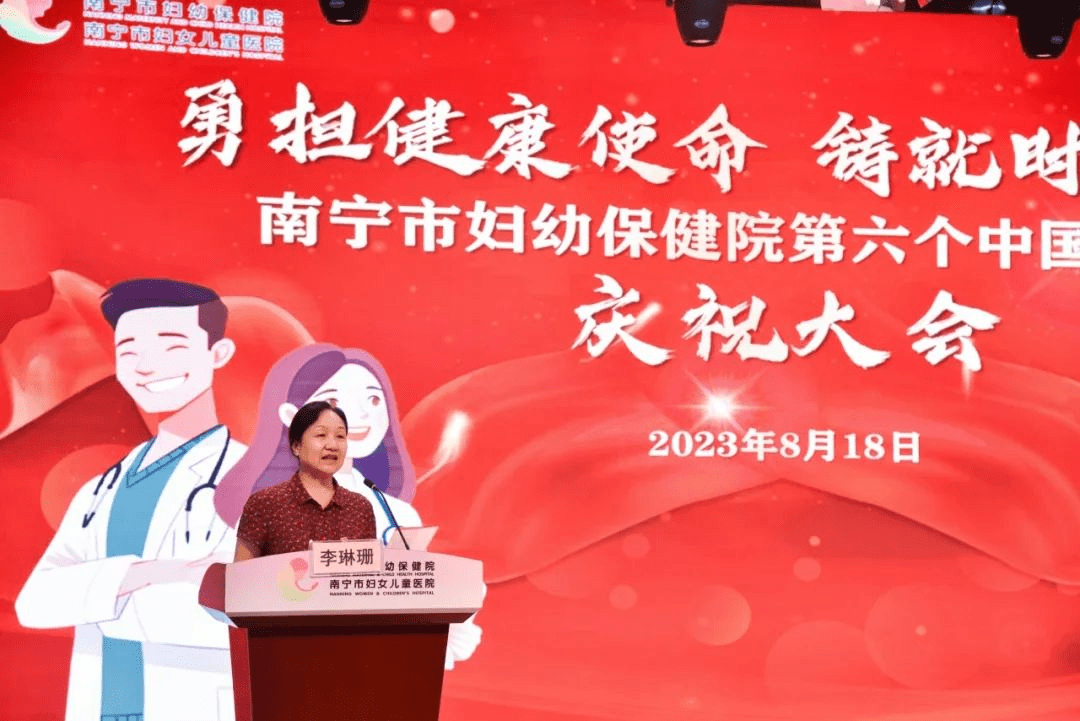 南宁市卫生健康委员会副主任李琳珊代表市卫健委向南宁市妇幼保健院致以节日诚挚的问候。她在讲话中指出,南宁市妇幼保健院始终坚持“人民至上、生命至上”的原则,以实际行动践行医务工作者的初心和使命,在疫情抗击最前线全力守护人民群众身心健康和生命安全。尤其是在今年面临疫情防控、人口出生率持续下降等不利因素的情况下,医院各项业务发展仍然保持增长,妇幼健康各项指标平稳向好,并走在全市卫生健康系统的前列。李琳珊希望南宁市妇幼保健院进一步弘扬伟大抗疫精神,勤练内功,提高技术水平,深耕科学研究,并坚定走专科特色发展之路,为首府妇女儿童健康保驾护航。