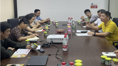 特派团还走访了滁州喜多多新食材科技有限公司。据姚振华总经理介绍,仅喜多多食品集团安徽公司2022年销售额即突破2个亿。期间品尝了该公司的什锦椰果、鲜炖银耳、仙草丸子等产品,尤其是企业首创的产品---仙草丸子,味道微苦,与秋梨膏味道较为相似,梁进教授认为这款产品最适合跟滁菊复配,该观点得到大家的一致赞同,姚总经理当即就表示安排企业研发人员开展试验。