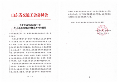 日前,山东省交通工会委员会发布《关于全省交通运输行业职工思想政治引领优秀案例的通报》,日照市公共汽车有限公司所报送的《政治辅导员“思想政治引领+心理健康辅导”双结合 拓宽职工思想政治引领新路径》案例荣获“山东省交通运输行业职工思想政治引领优秀案例”。