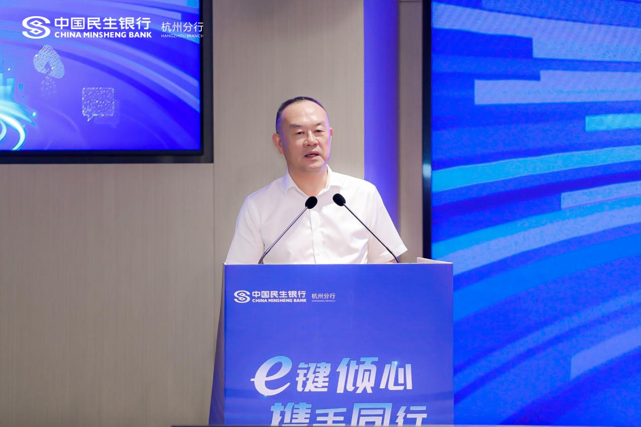 中国民生银行杭州分行党委委员、副行长倪朝晖在致辞中指出,为客户创造价值是民生银行不懈的追求,杭州分行深耕区域特色,交易银行国内贸易融资业务更是逐渐从“试点”走向“全面”,从“跟跑”迈向“领跑”的步伐前进。在贸融场景化的运用上,我们密切关注客户需求,敏捷应对市场变化,借助总行专业团队,依托浙商土壤的优势营商环境,敢扛重任,在交易银行业务的发展道路上,勇当创新发展的探路者、融通发展的先行者。