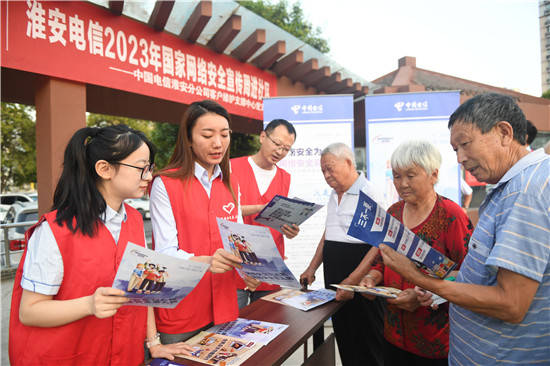 9月8日,中国电信淮安分公司客户维护支撑中心党支部联合淮海街道黄河南社区党委在健康新村开展2023年国家网络安全宣传周活动,营造全民共筑网络安全的良好氛围。
