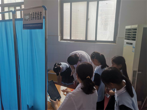 医生通过科学监测学生常见病和生长发育情况,掌握并反馈学生近视、龋齿、脊柱侧弯、肥胖、营养不良等主要常见病情况和影响健康的主要因素。特别是针对视力监测,医生认真细致地对每位学生进行检查检测,此次视力筛查充分利用信息化技术手段,筛查人员进行屈光及远视力检测,实现数据自动上传,并通过大数据分析及时了解班级、学校的儿童青少年视力情况,为制定、出台学生近视综合防控措施提供了数据支撑。同时,也让每一个受检学生及时了解掌握了本人的视力状况,提升了学生视力保护意识。