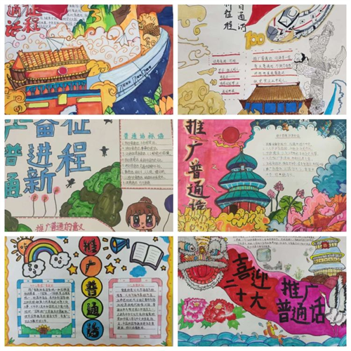 学校通过开展升旗仪式、小手拉大手、宣传标语、主题班会、手抄报等向全体师生发出倡议,号召每一位同学说好普通话,使普通话成为校园用语,做新时代的推普员,让校园的每一个角落时时响彻普通话优美的声音,让讲普通话成为校园最美丽的一道风景。