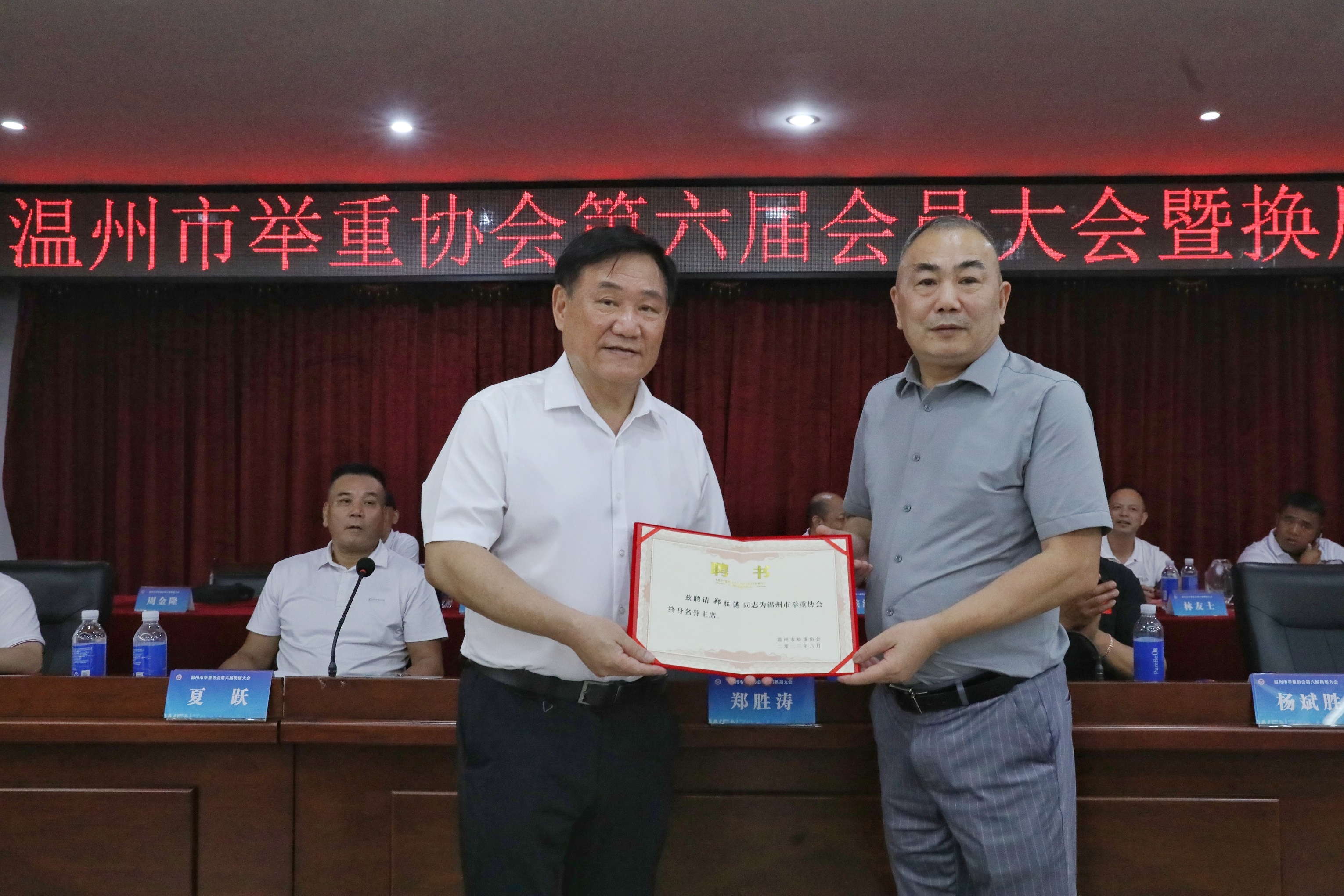 ![]() 23日下午的换届会议上,市举协第五届委员会秘书处做工作报告、财务报告,大会审议了《温州市举重协会章程(修改草案)》等,并选举产生了新一届委员会和领导班子。日乐科技股份有限公司董事长陈景链当选主席,周雄武、施献飞、周金隆、程国元、徐滨海、林友士、吴联伟、林成双和徐大钊当选副主席,吴联伟兼任秘书长,聘请郑胜涛为协会终身名誉主席,聘请夏跃为协会名誉主席,聘请王国新、杨斌胜为协会高级顾问,聘请王进友、钱跃进、黄荣满、黄仰和、陈环为协会顾问。会上还表彰了第五届优秀教练员、优秀裁判员、优秀运动员,并为协会名誉主席、顾问、荣誉会员颁发了聘书。 ![]() 郑胜涛为协会终身名誉主席 ![]() 夏跃为协会名誉主席 陈景链在当选新任主席后表示,近年来,在体育部门的大力支持和帮助指导下,温州举重事业取得了长足发展,收获了丰硕成果。接下来,市举协将做好两项工作,一是“走出去”,带领温州举重人走出去,和其他国家(地区)的举重人进行交流学习;二是“走进来”,力求让举重赛事走进普通市民生活,效仿篮球、健美等赛事,在商超、小区等地举办,让更多人近距离了解举重这项古老的运动。 ![]() ![]() ![]() ![]() 表彰先进 北京体育大学教授、亚举联技术代表杨斌胜特邀参加本次会议,他对温州举重事业和体育事业发展给出了高度评价。来温这几天,他还特意参观了温州的百姓健身房,得知不少举重人成了社会体育指导员,在百姓健身房指导市民科学健身,他对此称赞不已。 |