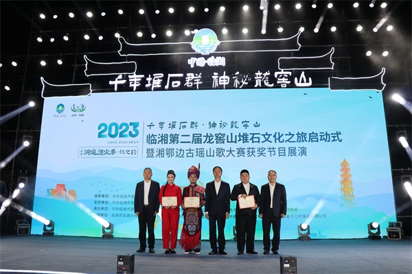 “临”山秀水,“湘”约天下!9月22日,岳阳洞庭渔火季·秋之韵——“千年堆石群 神秘龙窖山”湖南临湘第二届龙窖山堆石文化之旅启动式暨湘鄂边古瑶山歌大赛获奖节目展演,在湖南龙窖山风景名胜区举行。这是临湘推进文旅融合、助力乡村振兴的一大亮点,也是传承优秀传统文化、加深两省情谊的一大举措。