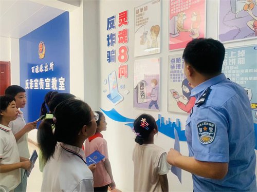 派出所民警利用反诈骗宣传室,向师生开展反电信网络诈骗宣传活动。向师生们讲解电信诈骗防范知识,提醒他们“不轻信、不转账、多核实”, 让师生们学习到防范电信网络诈骗知识,认识到电信网络诈骗的危害。