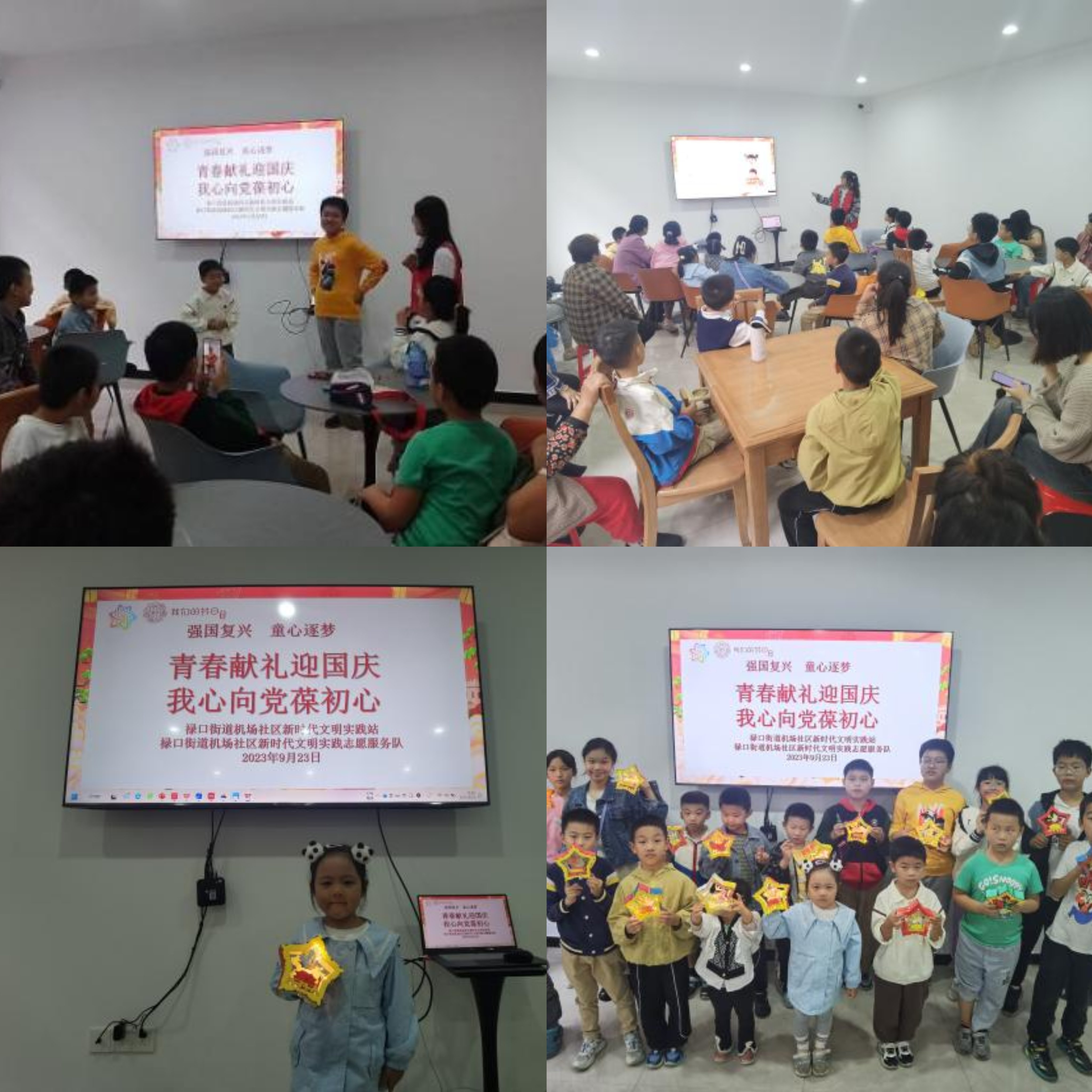 为进一步引导青少年传承红色基因,激发青少年爱国情怀,树立文化自信。2023年 9月23日,在国庆节到来之际,禄口街道机场社区新时代文明实践站开展“青春献礼迎国庆,我心向党葆初心”主题活动。 活动开始,志愿者带领大家了解了国旗、国徽的由来,以及国旗中五颗星星相互联系。大家一起唱《国歌》、《我和我的祖国》以及集体朗诵诗歌,以此来表达对祖国的热爱之情。同时,志愿者通过“星星向党”的手工带领孩子们制作了五星摆件,在制作过程中,社工耐心讲解摆件的制作步骤,通过画、拼、贴等把对祖国的热爱融入到手工中。 眼看着桌上的零件慢慢变少,五星摆件逐渐成型,在点亮灯饰的一瞬间,似乎也助燃了孩子们的爱国心。本次爱国教育活动结合爱国手工,激发了孩子们的爱国情怀,同时也让国旗形象深入孩子们心里,让孩子们用实际行动感恩祖国,用实际行动表达对祖国的热爱,深入弘扬红色文化,让红色文化吹进每家每户,落进每人心中。 ![]() |