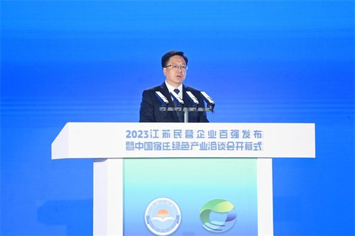 宿迁市委书记陈忠伟在致辞中说,宿迁所处的发展阶段,既是发展潜力所在,也是企业成长空间所在,“在宿迁,无论是过去、现在,还是未来,我们都始终高度重视工业、重视企业、重视企业家。”他表示,宿迁将坚持“工业强市、产业兴市”不动摇,全力打造长三角先进制造业基地,期待与企业家在不同领域,开展全方位、全天候的交流合作,一起共享宿迁工业化发展的红利。希望广大企业家能够走进宿迁,领略生产、生态、生活的美好图景,在畅叙友谊中拥抱生态、共谋发展;能够选择宿迁,感受创业、立业、兴业的优越禀赋,在继往开来中同向同行、共赢合作;能够扎根宿迁,把握天时、地利、人和的战略机遇,在双向奔赴中追逐梦想、共创未来。
