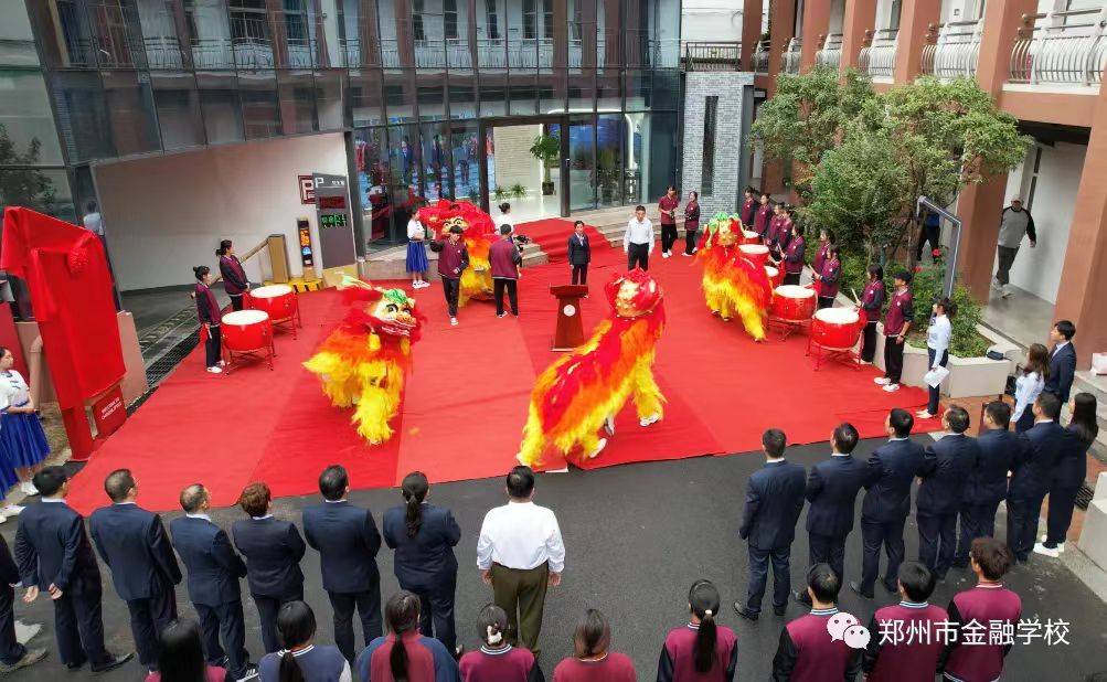 郑州市青少年诗书画学会副会长李洪涛、秘书长牛华朝、副秘书长宋衍及郑州市金融学校部分师生代表参加了揭牌仪式。 郑州市金融学校狮舞社、鼓舞社等社团学生进行了精彩表演。 |