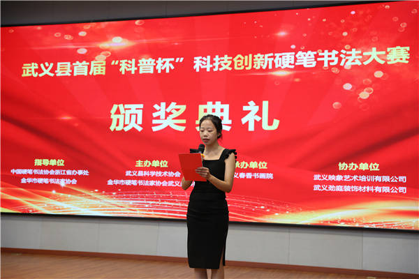 10月5日上午天高气爽,由中国硬笔书法协会浙江省办事处、金华市硬笔书法家协会指导,武义县科学技术协会、金华市硬笔书法家协会武义办事处联合主办,武义春香书画院承办,武义映象艺术培训有限公司、武义劲庭装饰材料有限公司协办的浙江省武义县首届“科普杯”科技创新硬笔书法大赛颁奖典礼,在浙江省现代化学校邵宅小学隆重举行。