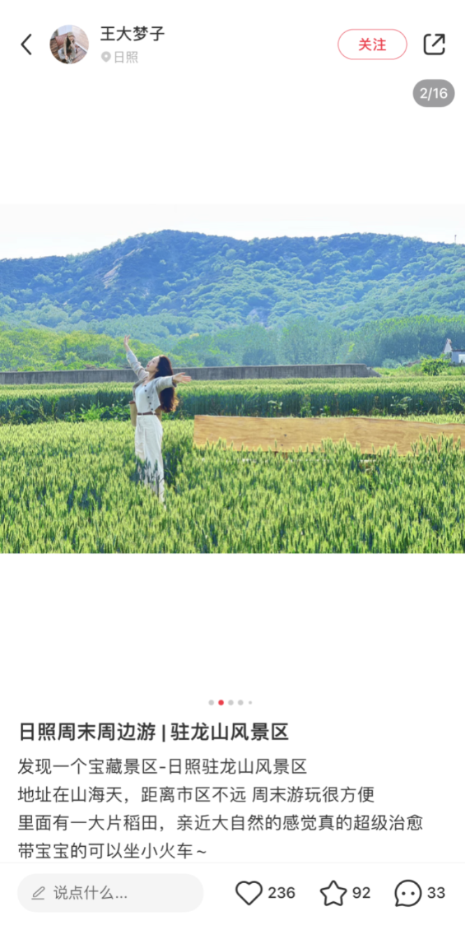 AUTUMN山海天网红打卡第七期(驻龙山风景区) 山海天首批网红打卡点第七期来啦! 麦田收获后,这片土地,又被赋予了新的期待。 城市生活的脚步穿梭不停,而我们想要拉近人与大地的距离:回归土地,自然生长,去驻龙山领悟自然生命力的感染性。 ![]() AUTUMN ![]() ![]() 山野 ![]() 落叶而知秋 AUTUMN IS COMING 秋意渐浓,精灵山谷德高粱地伴随着山野日夜,随山谷的风摇曳着沉甸甸的枝头。阳光醇厚柔润,收获的氛围愈加浓烈,我们邀请您参与这片山谷的秋天,体验这片土地赠予的礼物,收获秋实火红的浪漫,一同卷进这浓郁的谷香,收获这份惊喜。 ![]() ![]()