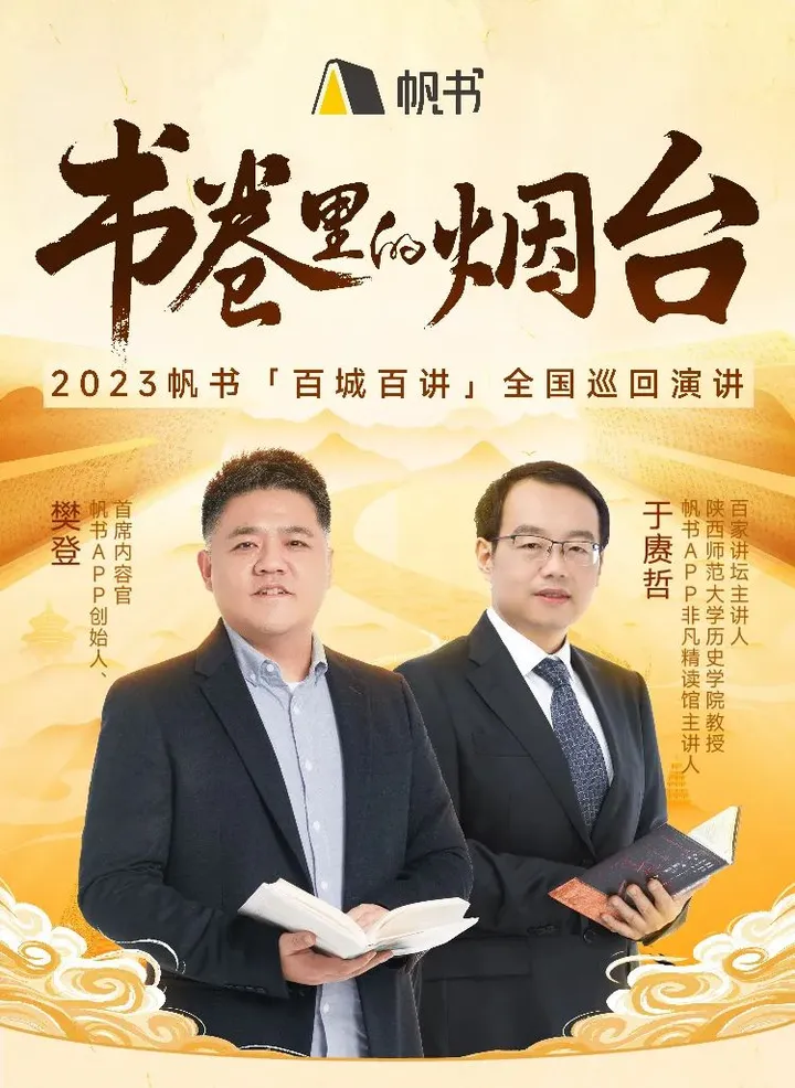 ![]() 为推进“书香烟台”建设,传承和弘扬中华优秀传统文化,烟台市委宣传部、烟台市文化和旅游局联合帆书,邀请樊登、于赓哲两位嘉宾,围绕“人间仙境·书香烟台”这一主题,采取“线上文化对谈直播+线下大型读书演讲”的方式,于10月28日开展“书卷里的烟台”2023年全民阅读推广活动,进一步丰富人民群众的阅读体验和精神文化生活,点燃大众阅读热情。 演讲嘉宾 1 ![]() 樊登 帆书APP(原樊登读书)创始人、首席内容官 2 ![]() 于赓哲 帆书APP非凡精读馆主讲人、陕西师范大学历史系教授、百家讲坛主讲人、隋唐史专家 活动安排