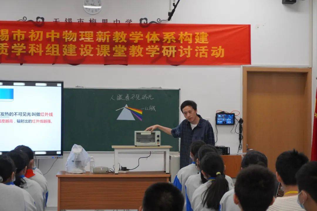 19日上午,江阴市夏港中学潘伟松老师的《人眼看不见的光》一课,将现代信息技术和物理课堂教学相融合,运用数字手段设计物理实验探究人眼看不见的光。