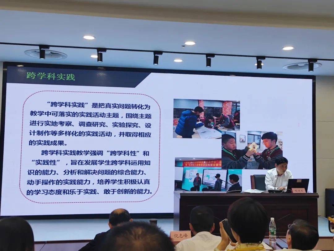 程建军老师的讲座《指向关键能力培养的初中物理跨学科实践活动设计与实施》,从四个方面展开。一、跨学科实践教学类型,可以有实践考察和工程制作两大类;二、实施路径的关键要素有:发现并提出问题,提出假设、选择方法和研制工具,实地考察获取证据,提出解释或观念,交流、评价探究(调查)成果,反思与总结;三、跨学科实践教学课时安排:课内确定主题、制定计划,课外实践探究、设计制造,课内外交流评价、反思改进;四、跨学科实践活动进阶设计。程老师的讲座引领学员们在探索中前行,在实践中反思与创新。