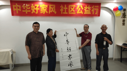本次活动邀请了有“中国路演之王”之称的萧顺意先生现场主持,萧主持风趣幽默的开场,将老人们逗得哄堂大笑。白鹤咀社区副主任王娟致欢迎辞,中华好家风社区公益行项目执行秘书长谭艺伟致贺。紧接着,人民艺术家、清华大学美术学院客座教授余五一先生现场绘画,几分钟就画出一幅蓝梅图,送给来参加活动年纪最长的90多岁的老奶奶。社区70多岁周光荣老师是一位自学成才的书画家,他老有所依、老有所乐,并且非常热心社区的志愿者工作,他活动现场挥毫写就“中华好家风”赠送给参会者。