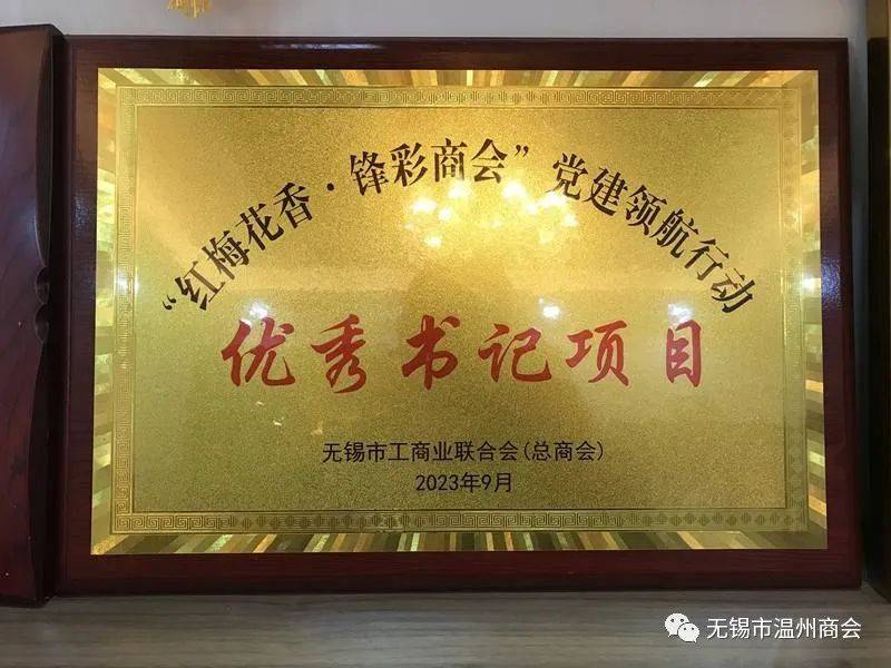 近日,无锡市温州商会党支部申报的红色"双传承”项目,在无锡市工商联“红梅花香•锋彩商会”党建领航三年行动第二批书记项目中荣获优秀书记项目!