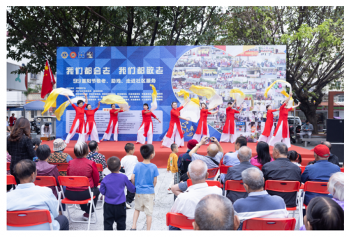 2023年10月21日,在重阳节来临之际,深圳狮子会走进宝安区航城街道九围社区开展《我们都会老 我们都敬老》爱老、助残活动,向200位70岁以上的社区老人、贫困残障人士捐赠钙片、羽绒被子、大米、牛奶、外用膏药、医疗仪器坐便椅、生活用品等物资,本次活动服务经费共15万元。