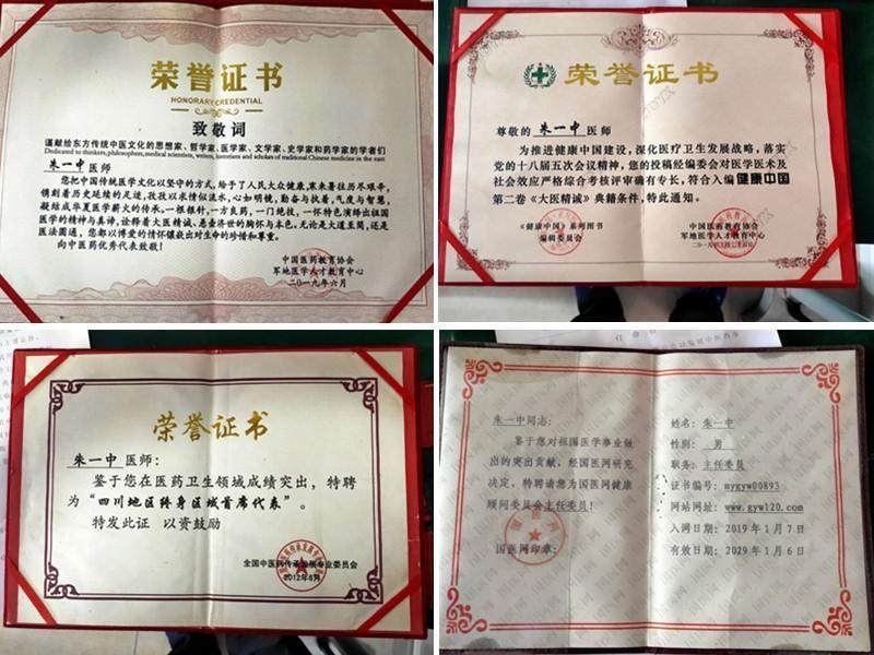 在30多年从医生涯中,朱一中无论在医学理论,还是跟随父辈及其他老师的临床实践,都格外注重手诊的学习和临床的观察!30多年来,朱一中没有打过一次扑克牌・麻将,没有一天专程外出旅游,即使采集患者所需的新鲜药材,心里也无时不想着医学和患者! 技不在高・而在德;术不在巧・而在仁;从医多年,他始终将医德牢记于心,心系百姓!在危难与疾病面前他往往不计个人得失,以治病救人为第一要务!