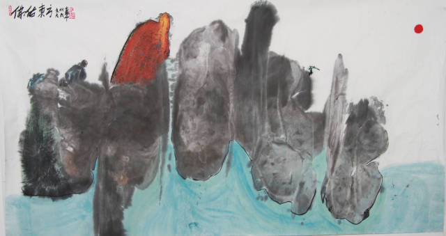 当我看到以上诸如此类的一些精点评语,好象在帮我代言,都说到了我的心坎上了。这些表达是我早就想说而没说出的心底之声。我在欣赏“逍遥派画”的过程中,大致经历了“三步曲”:刚一接触“逍遥派”画时,就象少女第一次约会,初见面留下了表象美。由于看不懂,感觉一头雾水,让人想放弃又于心不忍,总想探个究竟之感油然而生。时间长了,欣赏多了,能看懂一两副作品,发现了“逍遥派”画的内涵美,就象恋上了心爱之人,有了依赖,不是对它坐等“不请自来”,而是总想主动去光顾,哪怕“三顾茅庐”。再后来,几乎副副能赏,能解其意,真是精灵古怪,鬼斧神功。恍然大悟,好象明白了什么,就象得了相思病,隔日不见仿如一世,坐卧不安,魂不守舍,一门心思盼望与其厮守。整个过程就象让你经历了三重境界:看山是山,看水是水;看山不是山,看水不是水;看山还是山,看水还是水。长吁一口气,哈哈哈,这“逍遥派“画也太折磨人了,太陶醉人了,太诱惑人了吧! 袁竹“逍遥派"画真是难得的奇珍异宝啊。不仅原创,而且唯一,独一无二,无可取代,太稀罕了。当“逍遥派”画家袁竹的那一副副作品的画面映入我眼帘,简直就象着了魔一样,让我难已割舍。如《一路向东》《天人合一》《家国天下》《东方红》《上樑不正下必歪》《梵音乐水》《大月亮》《追月》《希望》《远山的呼唤》《高膽远瞩》《大禹治水》《逍遥游》《逍遥天下》《乾坤天下》《人间仙境》《万古长青》《天界》《空灵》《天地》《伏羲太极》《太极和》《仙岛遗址》《贵州恋歌》《八仙过海》……等等,多美啊!多有意境啊!!多有寓意啊!!!