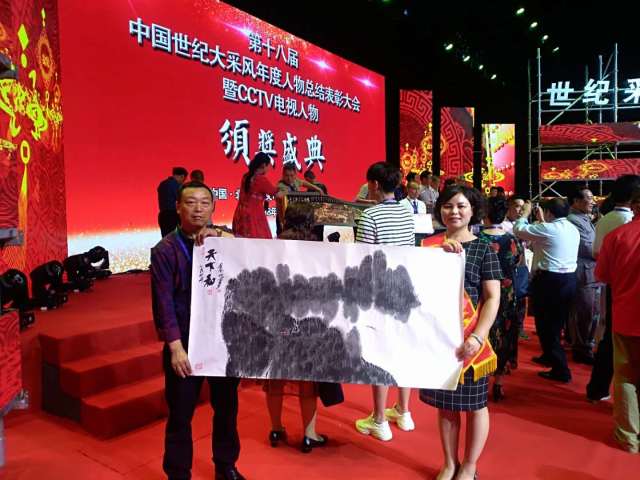 中国新长城组委会.、中国长城论坛组委会为逍遥派画创始人袁竹颁发荣誉奖牌