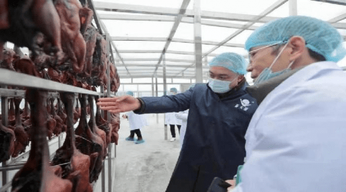 图为新大康生产车间 现代技术的烘房可以替代阳光的晾晒,经过30-60摄氏度间30个小时左右的烘制,杭州酱鸭就基本完成了整个制作工序。但是,真正杭州酱鸭的老味道还得需要阳光下的晾晒,阳光总是传统美食中一道最好的催化剂。