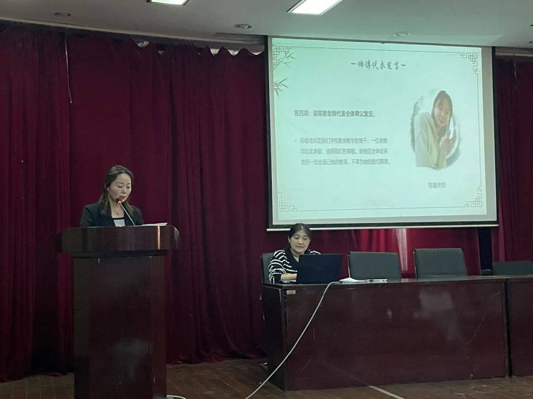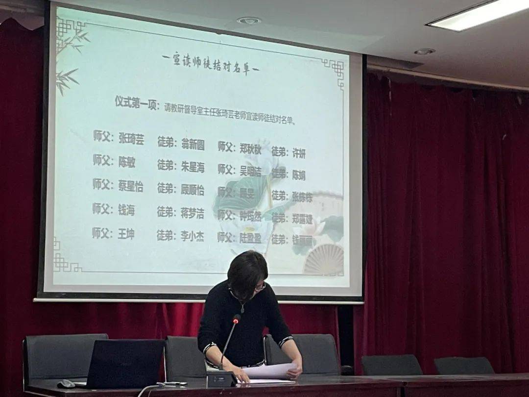 由教研督导室张琦芸老师宣读师徒结对名单并发布具体任务。 历史上,师徒关系一直被认为是人际关系中最崇高的一种形式。未来的日子师徒要相互关心,携手并进,共同提升教学水平和能力。 做好“青蓝工程”不在于形式,而在于行动。希望各位青年老师谨记领导和师父的教诲,虚心研究,扎实工作,多听课、多思考,尽快提高教学业务水平。 2:颁发聘书