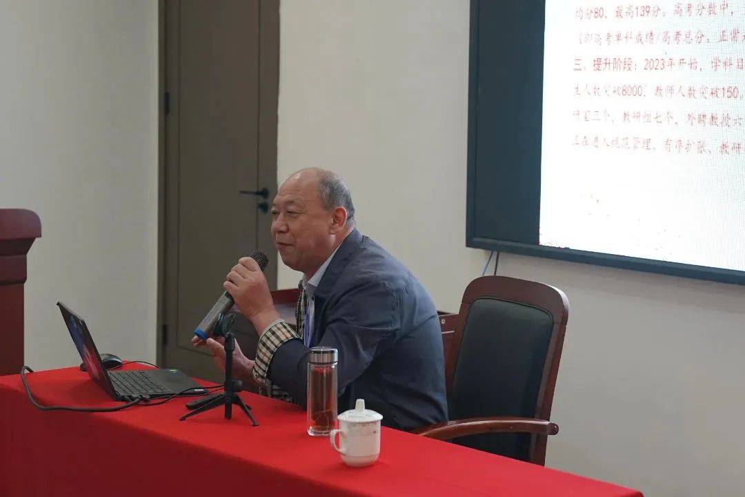 “树质量立校之策,走特色发展之路”是格瑞集团伊川县东城高中刘普林校长的讲话内容,刘校长从伊川教育形势谈起,讲述了一轴两翼的办学模式,分享了学校艺体特色建设的经验,即:狠抓教学过程,提升教学质量为轴,辅以美术特长生、体育特长生,在特色教学管理体系下,坚持创造奇迹,拼搏成就未来。