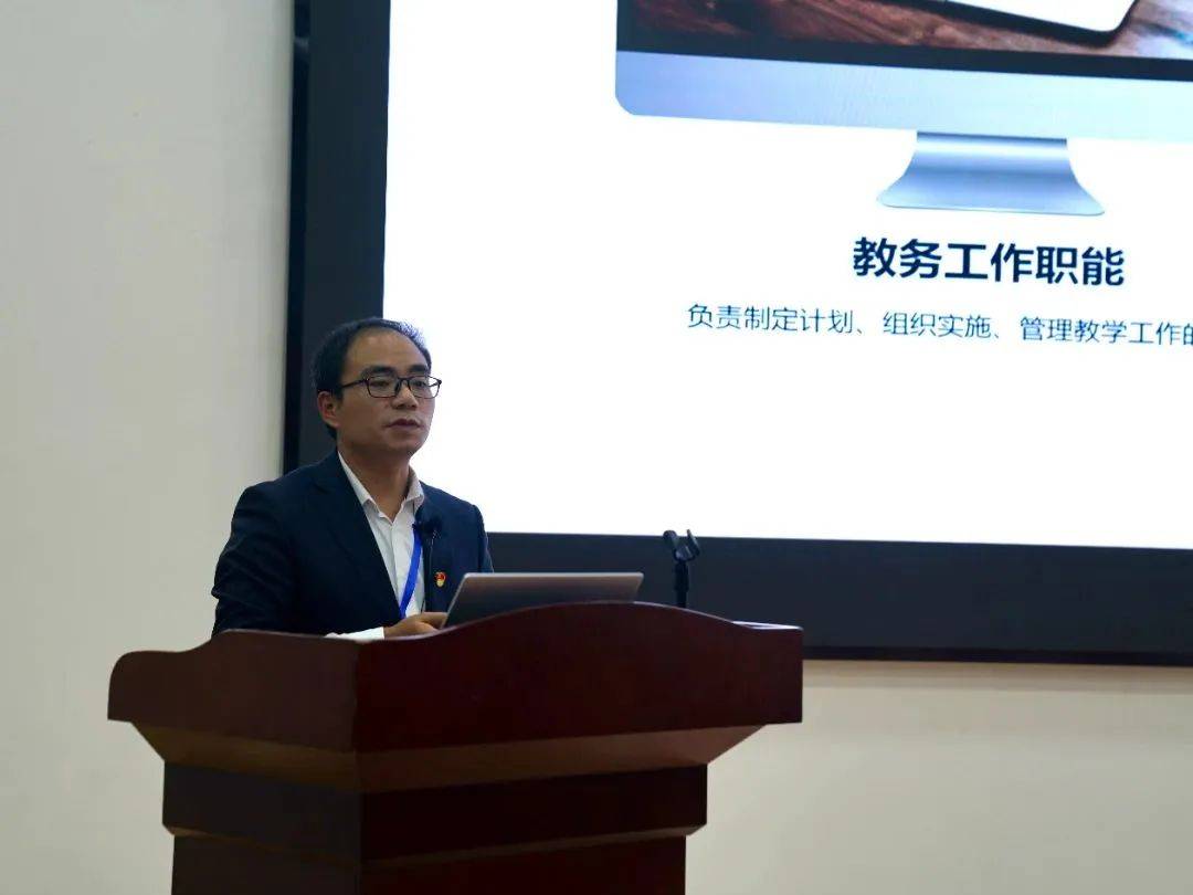 教务处副主任汪伟洋老师 从先锋高级中学整体教科研方面进行经验分享。建立教务处和年级部双向结合检查的制度,做好教师教学常规资料检查管理工作。坚持巡课制度,关注课堂上教师教和学生学的各项情况,对教学过程中发现的亮点及时总结,对发现的不足之处进行正确的引导和督导。督促教师根据学生考试分析与反思,及时调整教学动态,采取有效措施进行改进。各年级备课组坚持教师集体备课和教研的时间每周2课时,进行超周备课和重难点、试题研究。统一进度、内容和试题。切实减轻学生的课业负担。做好校本教材体系的完善和课题研究工作,并对各学科组研究进展情况给予支持和督导,对形成的方案组织评比,对好的内容支持立项研究。