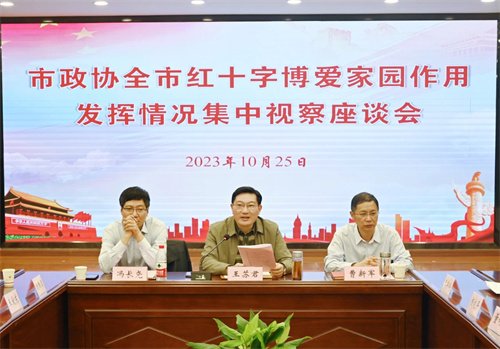 10月25日下午,市政协党组成员、副主席王苏君率领市政协副秘书长、办公室主任曹新军,市政协教卫体和人资环委主任冯长尧等12名委员,集中视察了全市红十字博爱家园作用发挥情况。市红十字会党组书记、常务副会长张柏全程陪同。