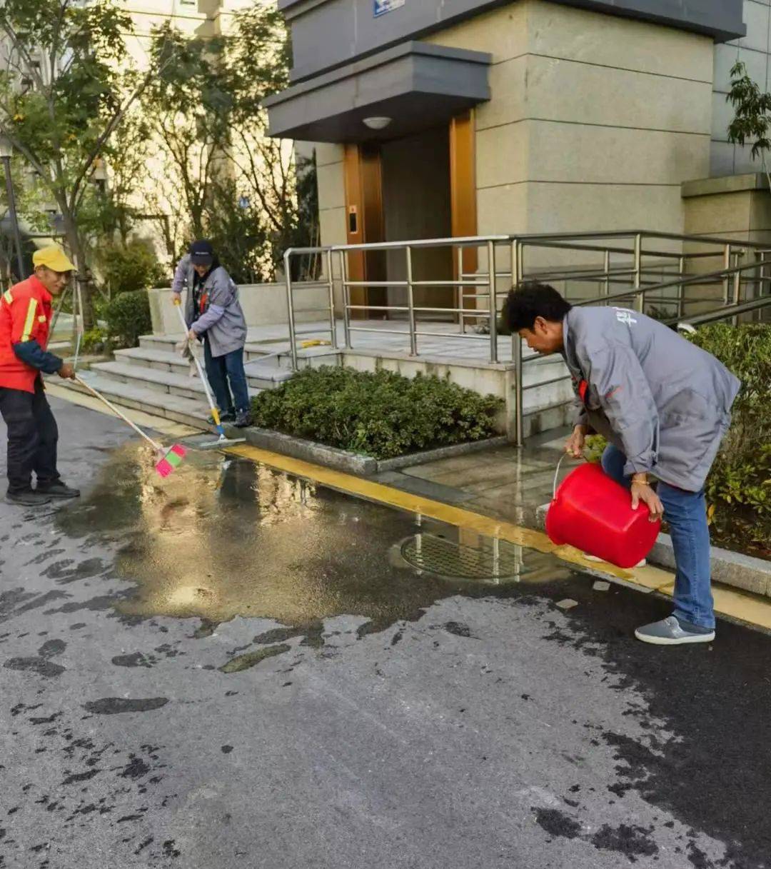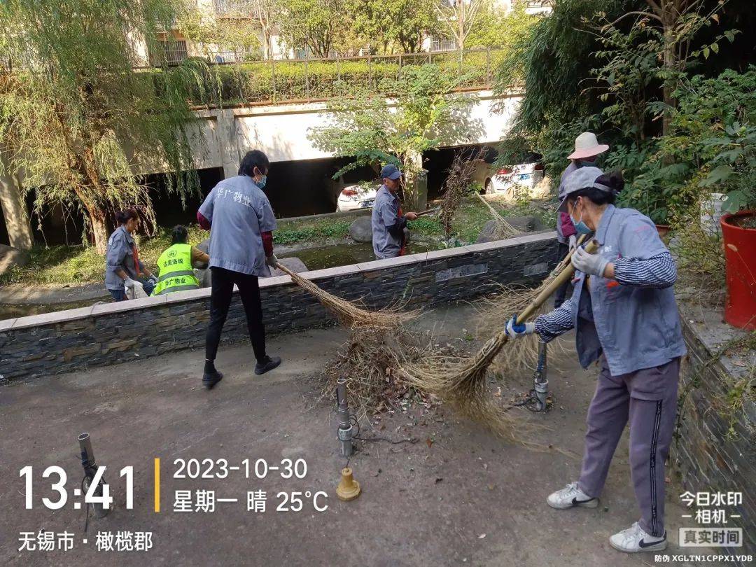 绿化工人早早地五点多就开始清扫任何一个小区死角,及时消杀及时清理;保洁服务人员也是6点就开工清扫。节日来临时做好布置工作,防汛灾害时做到防患于未然,只为给业主们带来舒适的居住环境。