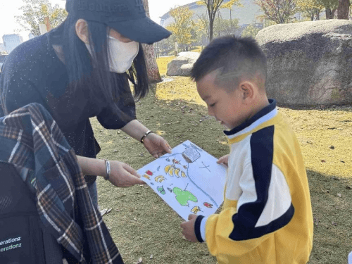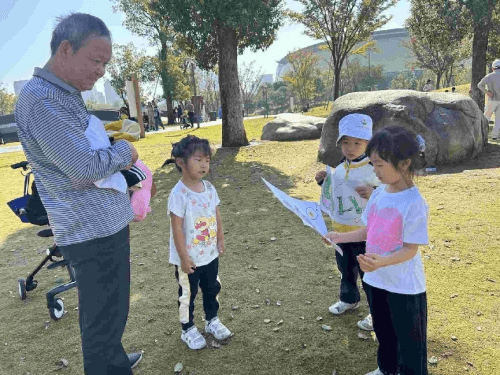 无废宣传我在行 为了呼吁更多的人加入保护环境的行列中,幼儿带着自己绘制的宣传海报,来到亚运公园和小区中,向叔叔阿姨介绍保护环境、垃圾分类的方法,让更多的人知道美丽的地球环境靠大家,争做小小环保宣讲员。
