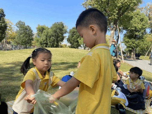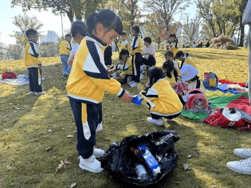 垃圾分类我来做 垃圾分类关系着人民的生活环境,关系节约使用资源,也是社会文明水平的一个重要体现。幼儿们利用秋游的机会,结合日常所学的垃圾分类知识,将周围的垃圾们分类送回各自颜色的垃圾桶内,将美丽的风景留在每一个游玩的人们心中。