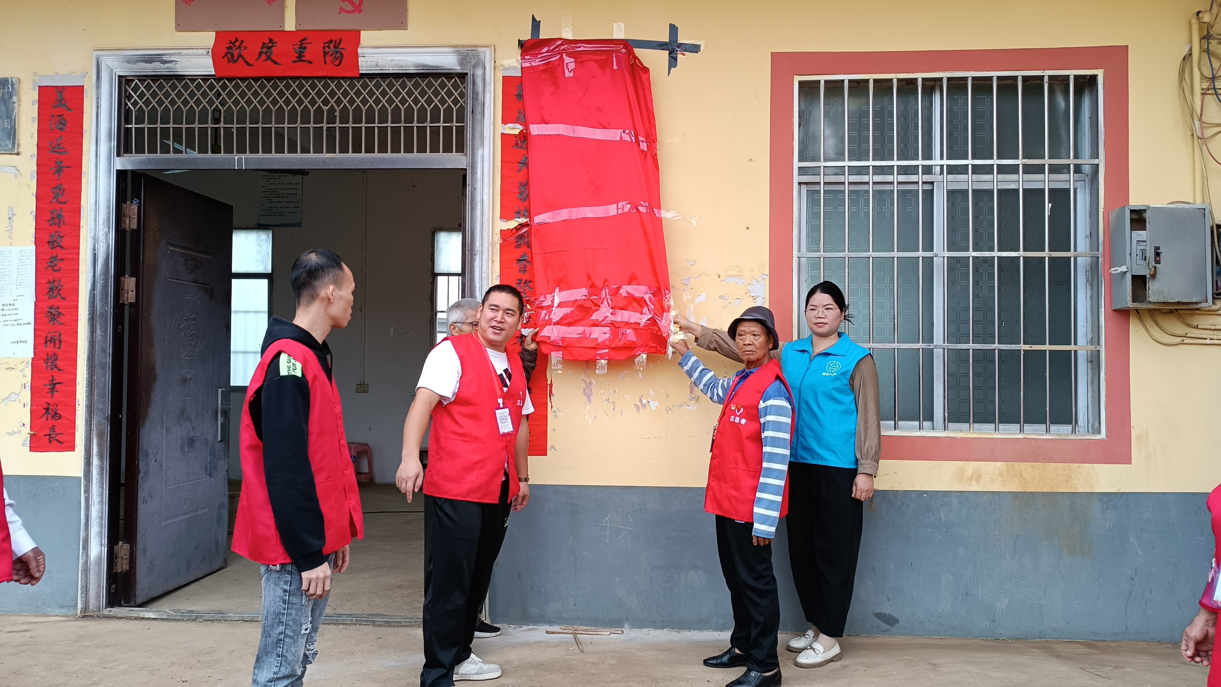 早上9点在王灵镇横寨村政务服务中心,宾阳县助老协会在此设立办事处(志愿者服务站),负责人:林活文,横寨村民,宾阳县助老协会的优秀志愿者,宾阳县助老协会计划在16个乡镇,各村委建立办事处(志愿者服务站)零距离的为高龄老人,退役老兵,残疾老人,特殊群体老人提供社会关爱服务,传承孝老爱亲中华美德。在宾阳县民政局,王灵镇民政办,宾阳县助老协会,横寨村村长,共同见证下,举行揭牌仪式。