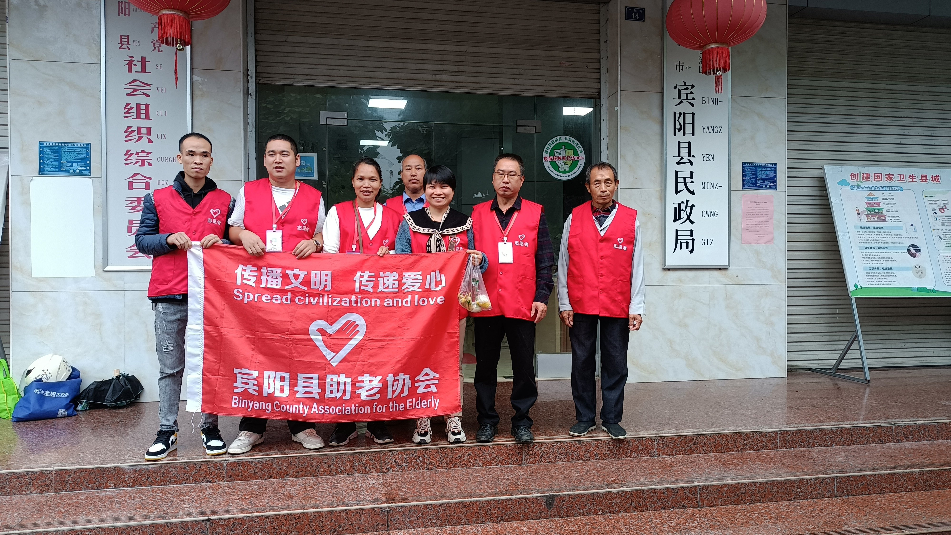 早上7点30分在宾阳县民政局门口集合,8点准时出发去王灵镇横寨村开展公益活动,关爱高龄老人,关爱抗战老兵,关爱退役老兵。