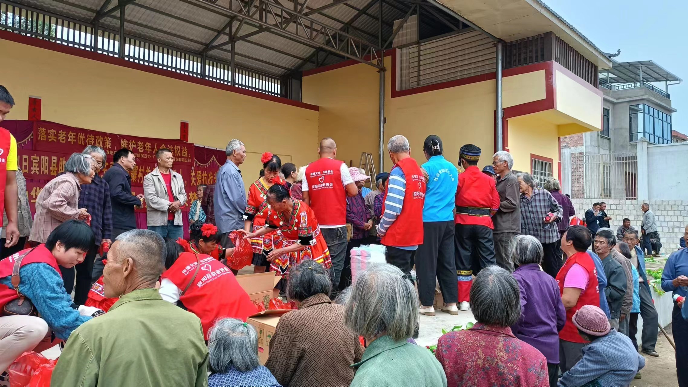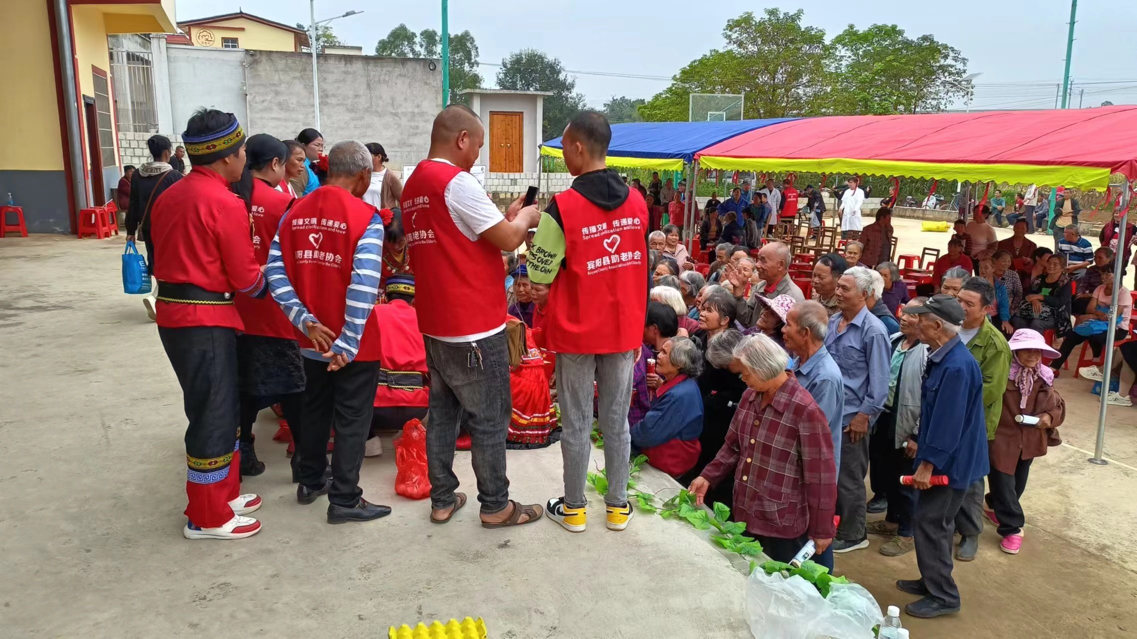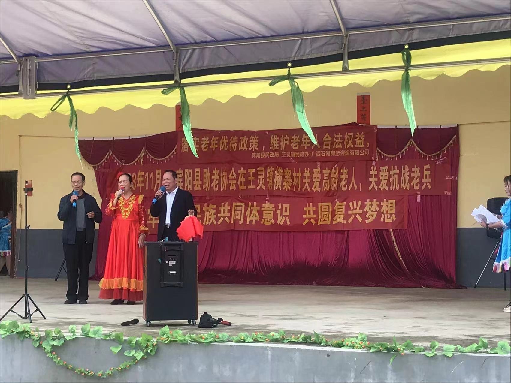 2023年11月8日宾阳县民政局、宾阳县助老协会、王灵镇民政办,广西石湖商务咨询有限公司、宾阳桂宾医院,王灵镇横寨村夕阳红文艺队,一行人走进王灵镇横寨村开展公益活动关爱高龄老人,关爱退役老兵,传承孝老爱亲中华美德,营造尊老敬老养老助老的文明新风尚,传递正能量。