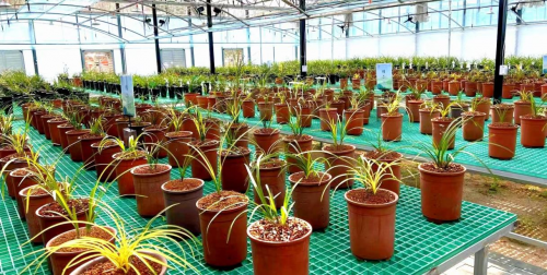 栾川县蕙兰文化产业园种植培育大棚实景 与砚台童话小镇的明白河西北比邻的盘龙湖,迎来了省院领导观摩考察的第四站,总设计师胡太明院长详细汇报了“山湾风车村”项目从创意规划到后期运营的概况。