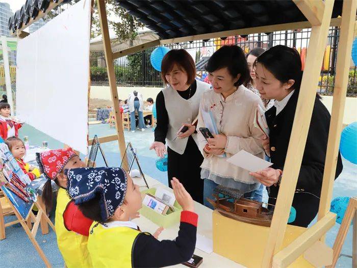 专家组参观了我园“创想沙水”游戏场、“艺术公园”创美区、“秋日美好派送”农作基地、“融古韵,发新声”庭院音乐会等多个户外游戏空间以及“悦美创意坊”“悦玩建构场”“悦享图书室”等多个室内共生空间,通过各类场域的统整与融合,游戏功能的联动与开发,师幼共建“小小梁溪文化馆”“悦珑上河图——游戏街”“嬉游梁溪场”等游戏场域充分满足孩子们亲近自然、嬉戏玩耍、运动锻炼、探索体验的需求。